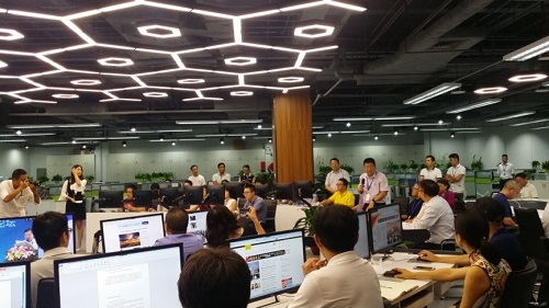 在這場全國晚報業(yè)的盛典之后,參加本次全國晚協(xié)年會的嘉賓們一同參觀了羊城晚報全媒體采編指揮中心(即“中央廚房”)。作為羊晚報業(yè)集團(tuán)在推動媒體深度融合過程的一項代表性成果,羊城晚報的“中央廚房”獲得了報社社長劉海陵的高度評價與重點(diǎn)推薦,同時,由報社精心策劃、剪輯的一則關(guān)于“中央廚房”全面介紹的宣傳大片,也在這次參觀交流會上震撼播出,并收獲媒體同行的肯定與認(rèn)同。